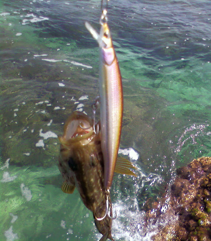 Да накат сегодня был не шуточный. На рассвете баракуда поломала мне застежку и с Эксрепой ушла в море. К берегу подойти вообще небыло возможности высокая волна поднималась и била очень хлестко. Но лаврачная пена не давала покоя. И буквально на втором забросе когда обычно ничего не ожидаешь зацеп и хорошая потяжка в 7 метрах в пенной волне. Держа на привязи хорошего лаврентия я приблизился к границе.... и тут волна окатила меня сног до головы в итоге - повезло сегодня этим мерзавцам. Ну да ладно - пусть живут.