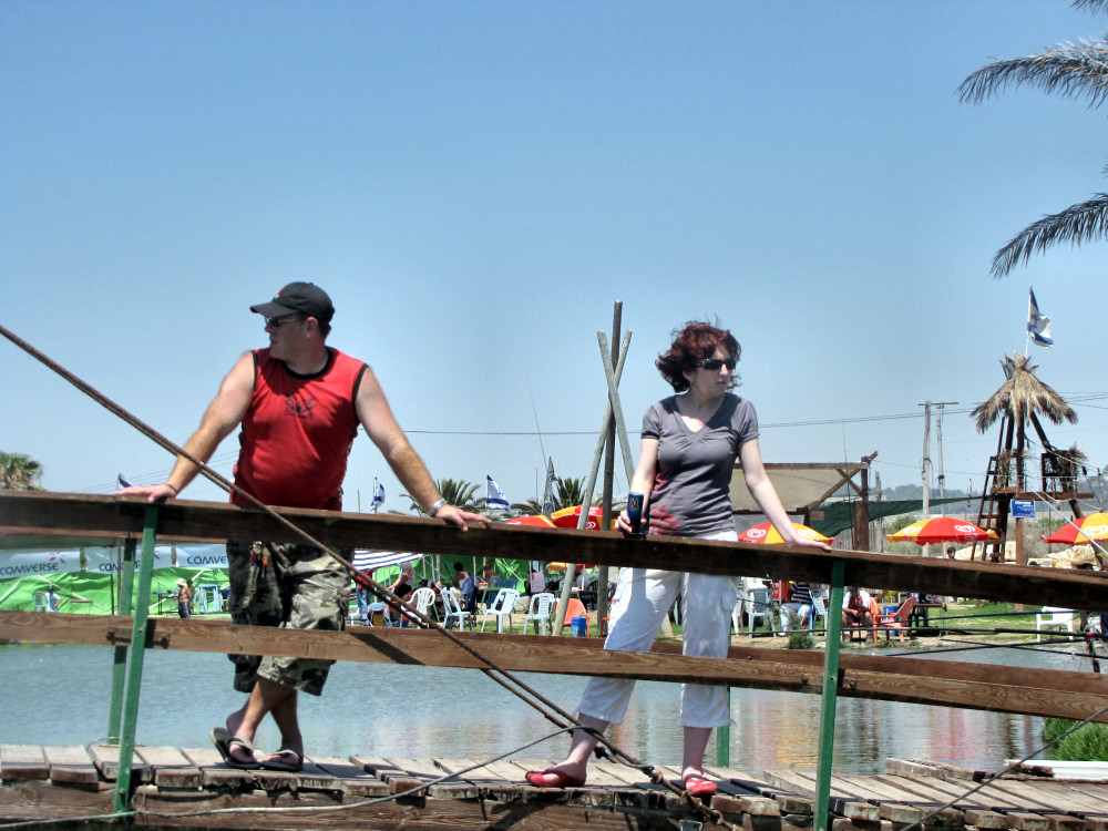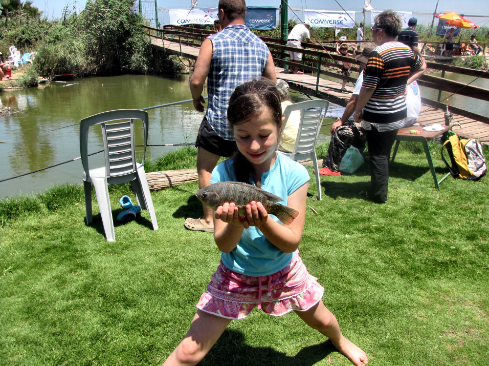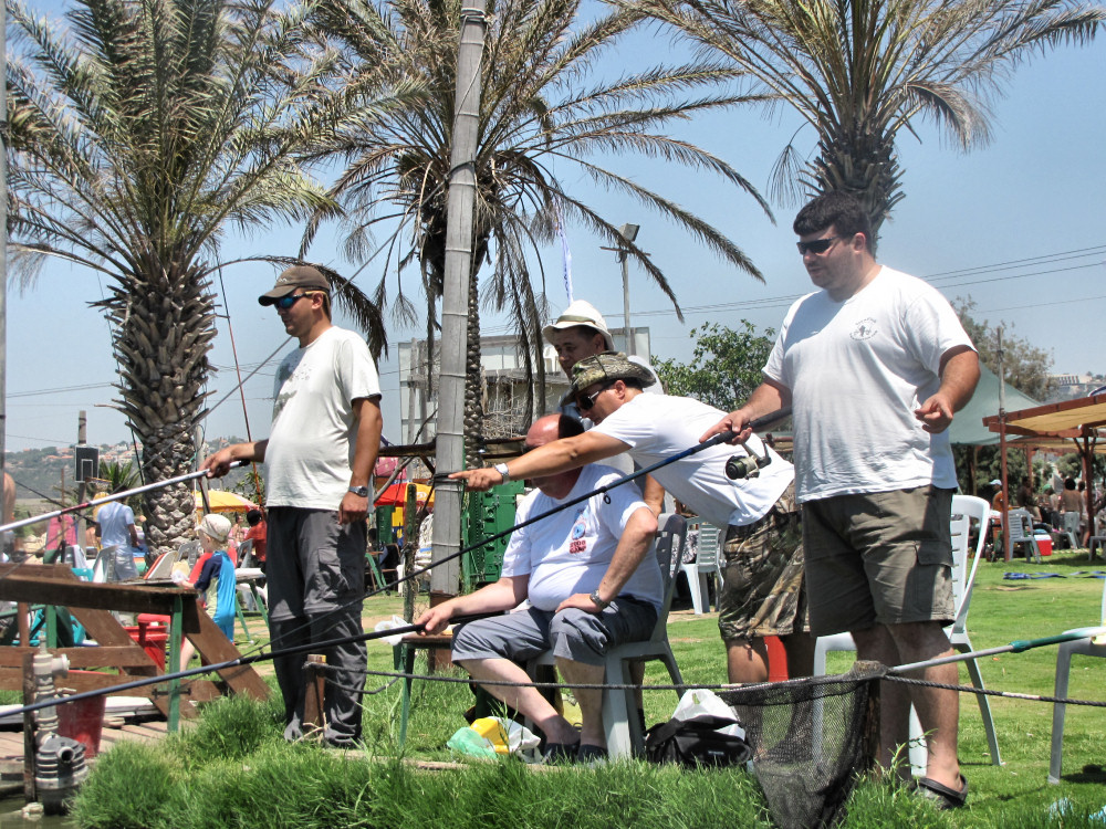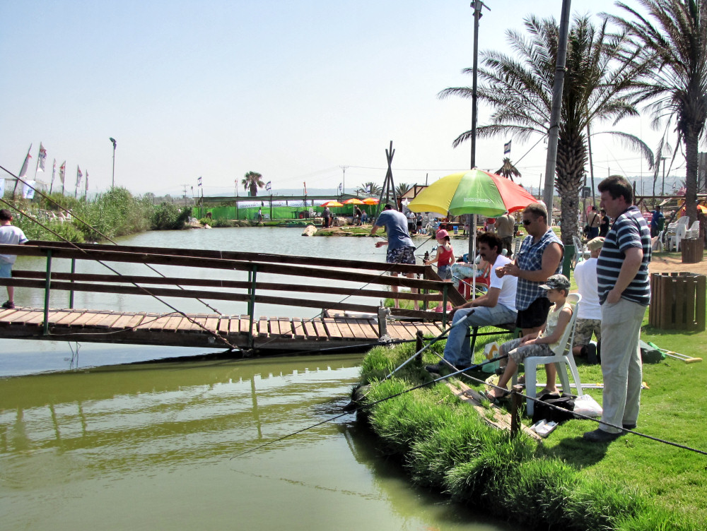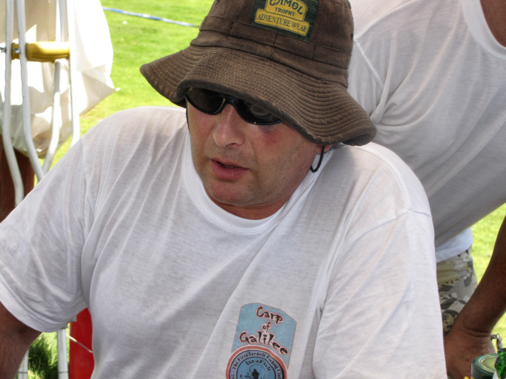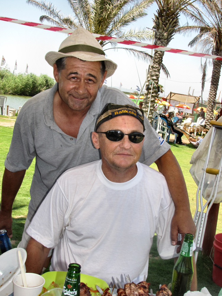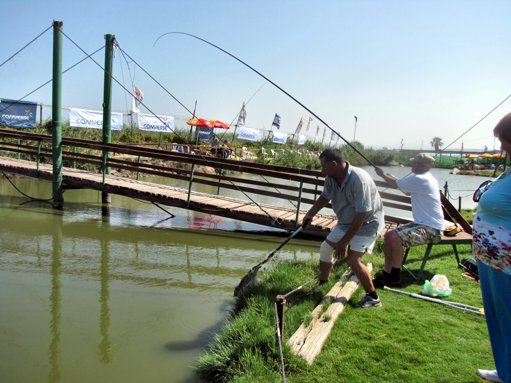 Когда все было готово, Михалыч с Саней сразу рванули к воде, половить рыбку. И вскоре Саня подсек неплохого карпика - причем хозяин парка Офер говорил, что последние несколько недель карп вообще не клюет. Ну это у кого как