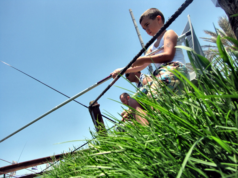 Детям тоже нашлось занятие - кто помогал родителям ловить рыбу (ну кто кому помогал еще вопрос), кто купался в бассейне, а кто просто ползал вокруг и радостно гукал, обнаружив очередную гадость, которую можно засунуть в рот.