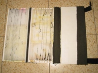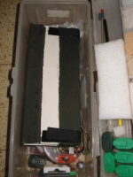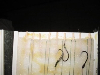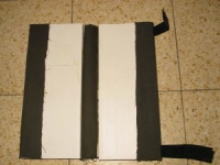 Принцип прост - крышка от короба выглядит в сечении как буква "П" с очень маленькими ножками и широкой перекладиной. Нужно 4 куска одинаковой длины (так как у меня была не очень длинная крышка, то и поводочницы получились коротенькие). Потом внутрь я вклеил пенопласт (из коробки где перевозились телевизоры) так, чтобы его толщина не превышала (то есть была меньше) высоту "стенок" и чтобы он не доходил 1 см до торцевых краев. Потом каждые две крышки скрепил между собой с помощью куска плотной ткани и клея, по типу книжного переплета. Потом получившиеся две "двухстраничные" книжки скрепил вместе, по тому же принципу. Затем наклеил полоски "липучки", чтобы сделать застежки. И все. В ппенопласт воткнул порезанные пополам зубочистки ( там, где пенопласт не доходит до края). Поводок цепляется петелькой за одну зубочистку, затем, если он длинный, оборачивается вокруг зубочистки на протвоположном торце, а крючок просто втыкается в пенопласт. Максимальное кол-во оборотов, которое я наблюдал у себя было равно четырем. Что я думаю гарантирует нормальное поведение лески....