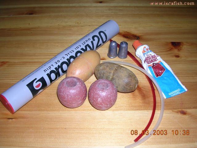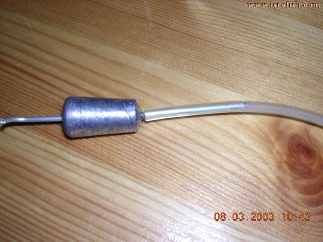 Исходные материалы – поплавок для сети, свкозное грузило, клей или эпоксидная смола, трубочка диаметром 2-3 мм, проволока диаметром 1-1.5 мм (рис 1). Поплавок желательно целенький и не долго прослуживший целям браконьеров. Грузило с подходящим для заброса весом, под вашу снасть.&&