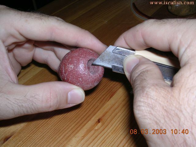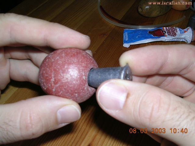 Приготовление – берётся поплавок и растачивается с одной стороны под форму грузила, расточку можно производить сверлом или ножом, в зависимости от формы грузила (рис.2). После того как поплавок расточен, можно производить склеивание поплавка. В начале приклеиваю грузило на исходную позицию (рис 3.), после этого в него (грузило) вставляется проволока, подходящая по диаметру (рис 4.), на неё со стороны поплавка одевается пластовая трубочка, что бы она немного выступала за приделы поплавка (рис 5). Очень важно что бы размеры (внутренний диаметр) трубочки и грузила совпадали, иначе потом во время проваживания лески в поплавок возникнут проблемы.