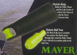 Замечательное описание этого устройства вы найдете на сайте Maver. Вкратце, можно описать ее так - пробка снабжена дополнительными 1/3 длины резины. Достигается это тем, что резина крепится к соединению между первой и второй секциями карпового комплекта, а затем проходит вокруг специального блока на пробке в теле второй секции (там где обычно располагается пробка), а затем обратно через центр замыкающего устройства (называемого боеголовкой, со сквозным отверстием) к верхней пробке и коннектору. Это устройство довольно прикольно и восхваляется как прекрасное дополнение для ловли карпа, так как дополнительная резина позволяет более легко подвести рыбу к садку.
