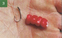 | Для насаживания четырех зерен кукурузы на волос применяйте специальную иглу. | На волосяной оснастке зерна кукурузы должны находиться сразу за крючком. |