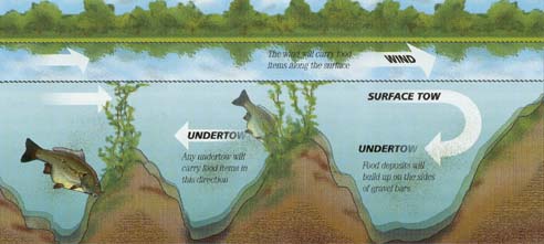 От направления ветра в значительной мере зависит и место концентрации естественного корма для рыбы.