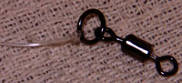 Шаг №5 Привяжите вертлюжок с дополнительным кольцом на конец лески , для того, чтобы оснастка могла свободно вращаться.. | ![]() |