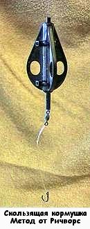 С данной оснасткой рыба начинает свое движение с наживкой во рту, не ощущая сопротивления, создаваемого весом кормушки. При ловле таким методом, вы должны располагать удилище под углом 45 градусов к леске и сидеть рядом с ним, так как поклевки могут быть внезапными и очень резкими. Обязательно использование прочных подставок для удилищ.