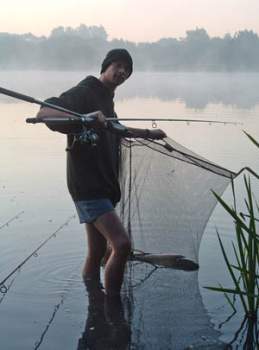 А теперь давайте подумаем, что происходит сразу после того, как у нас клюнет большая рыба? Первым делом мы должны убедится, что все необходимое находится в нужном месте и в нужное время. Вот предположим у вас поклевка, а ваш подсак находится в тубусе, а карповый мат вообще в багажнике машины, чего тут хорошего? Прежде чем забросить наживку, убедитесь, что подсак разложен и находится недалеко от удилищ. Позаботьтесь о том, чтобы размер сетки подсака соответствовал рыбе, которую вы предполагаете поймать. Если вы ловите карпа, и водоем содержит некоторое количество "монстров", вы должны быть готовы к поимке такого экземпляра! Как по мне - нет прощения неправильно подобранному снаряжению. На тех водоемах, которые принадлежат мне, мы просто выгоняем тех рыбаков, которые приходят с неподходящим снаряжением, как делают это и многие другие водоемы - так что думайте! Я согласен, что снаряжение стоит денег, но даже самые дорогие снасти последнее время можно намного дешевле приобрести на аукционах, типа eBay, так что оправданий быть не может.