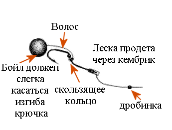 Несмотря на то что "Кривой крючок" лучше всего приспособлен для донных насадок, он так же будет работать с плавающими насадками. Хотел бы порекомендовать вам если вы используете всплывающие насадки, делать их достаточно плавающими, чтобы крючок был поднят аккуратно. Иначе наживка может сползти к колечку крючка, вместо его изгиба (рис 4).
