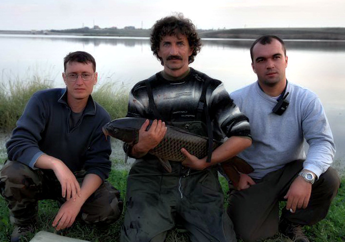 Хочу представить вашему вниманию новый магазин товаров для рыбной ловли и подводного плавания/охоты. Важной особенностью этого магазина является то, что впервые на израильском рынке рыболовных товаров появился русскоязычный предприниматель из алии 90-х годов. Олег (фото в центре), хозяин нового магазина - давний посетитель форума "ИсраФиш", а с января этого года Олег стал полноправным членом нашего клуба и недавно принимал участие в международном чемпионате по ловле карпа в Румынии, на озере Радута - "Монстр Карп 2006".